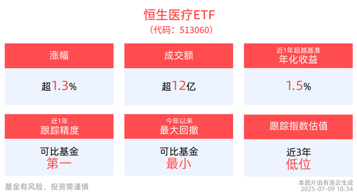 跟踪精度方面,截至2025年7月8日,恒生医疗ETF近1年跟踪误差为0.069%,在可比基金中跟踪精度最高。