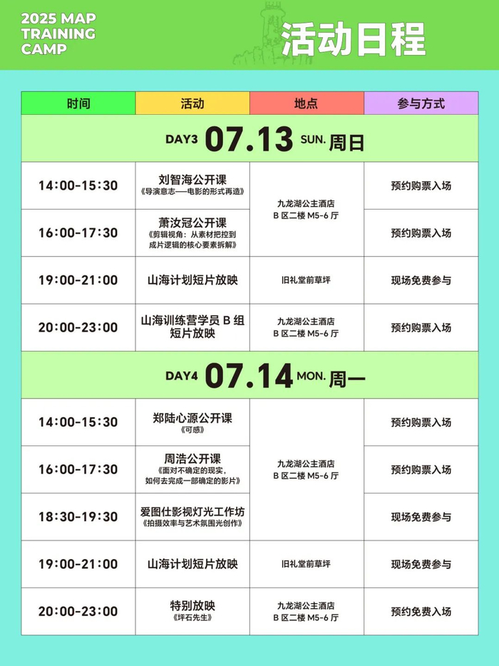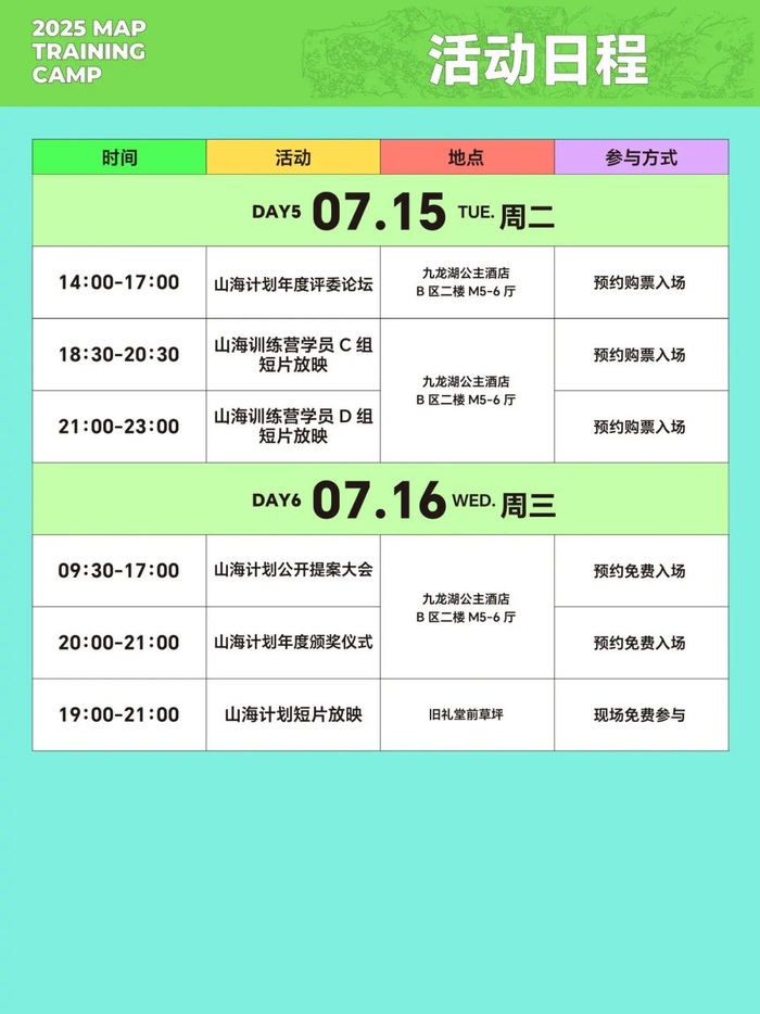 7月16日,山海训练营将举办20强项目的公开提案大会,由上述五位评委对项目进行专业点评,和青年电影人们深入交流,并以专业审慎的态度完成10强项目的选拔。当晚,2025山海计划10强青年导演将正式揭晓。他们将获得创作资金、拍摄器材、后期支持、宣传发行等在内的综合扶持。山海计划多个合作伙伴还将在现场“加码”颁奖。