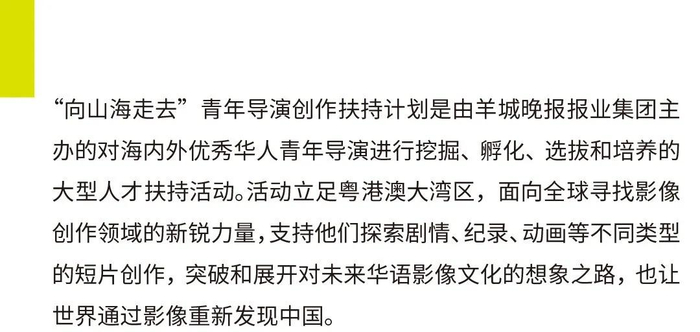 日前,入选训练营的山海计划20强青年导演名单已揭晓。他们将从洛杉矶、纽约、巴黎、香港、北京等城市来到广州,接受阿美、董劲松、王庆锵、甘小二、周浩等年度评委的专业指导与点评。陈仕忠、刘智海、萧汝冠、张凡、郑陆心源等训练营导师则将以多元视角与丰富经验,从编剧、导演、制片、剪辑等多个维度出发,和青年电影人共同探索从文本到影像的实现路径。