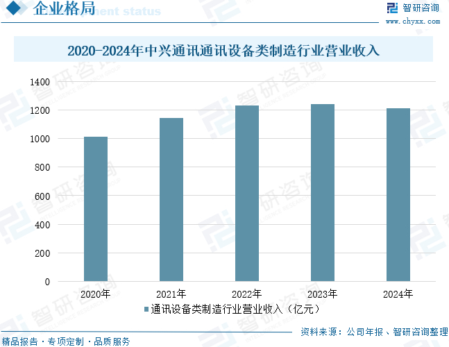 中兴通讯股份有限公司是全球领先的综合通信解决方案提供商。公司通过为全球160多个国家和地区的电信运营商和企业网客户提供创新技术与产品解决方案,让全世界用户享有语音、数据、多媒体、无线宽带等全方位沟通。公司成立于1985年,在香港和深圳两地上市,是中国最大的通信设备上市公司。中兴通讯拥有通信业界最完整的、端到端的产品线和融合解决方案,通过全系列的无线、有线、业务、终端产品和专业通信服务,灵活满足全球不同运营商和企业网客户的差异化需求以及快速创新的追求。未来,中兴通讯将继续致力于引领全球通信产业的发展,应对全球通信领域更趋日新月异的挑战。数据显示,2024年中兴通讯通讯设备类制造行业营业收入为1213亿元。