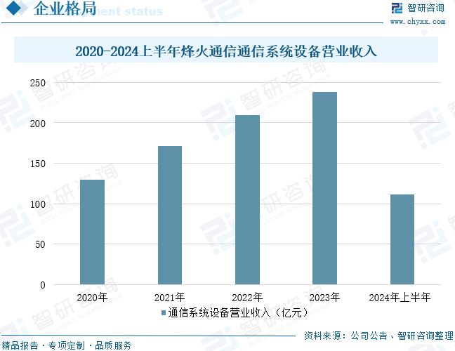 烽火通信科技股份有限公司是国际知名的信息通信网络产品与解决方案提供商,自1999年成立以来,始终专注于全球信息通信事业的进步与发展。公司主营业务立足于光通信,深入拓展至信息技术与通信技术融合而生的广泛领域,并成为我国智慧城市、行业信息化、智能化应用等领域的核心企业。面向5G时代,烽火通信秉承“最大限度挖掘数字连接价值,造福人类社会”的使命,以提振产业经济为己任,瞄准世界领先技术、提升核心竞争力、加速国际化进程,以更加开放的胸怀和更有远见的视野,贡献烽火智慧和烽火方案,让社会共享信息通信带来的美好生活。数据显示,2024上半年烽火通信通信系统设备营业收入为111亿元。