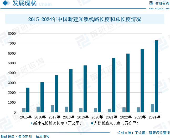 作为全球最大的光纤光缆生产国和消费国,我国已建成覆盖城乡的全球规模最大的光纤网络基础设施。近年来,我国光缆网络建设持续保持高速发展态势。工信部数据显示,2024年中国新建光缆线路长度856.2万公里,同比增长80.71%;全国光缆线路总长度达7288万公里,同比增长13.31%。庞大的网络基础设施建设为光传输设备市场创造了持续增长的需求空间,特别是在5G深度覆盖和千兆光网建设的双重驱动下,接入层光传输设备需求呈现爆发式增长。与此同时,随着光纤网络向农村和偏远地区延伸,对高性价比、高可靠性的光传输设备需求也在持续增加,这种多层次、多样化的市场需求正在推动我国光传输设备产业向更高质量发展。