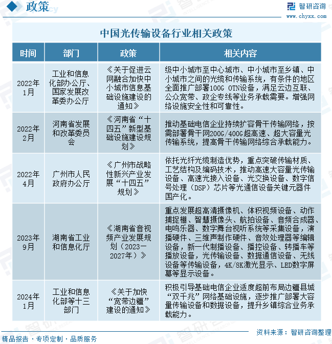 2025年中国光传输设备行业相关政策、竞争格局及未来前景展望:随着5G网络建设和数据中心扩容推进,行业应用前景广阔[图]