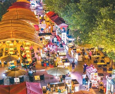 消费者“因食而游”的半径持续扩大,市井街巷的烟火小店受到不少食客青睐。图为广西壮族自治区贺州市八步区江南中路夜市上,众多市民游客前来观赏夜景,品尝美食。黎豪图摄(人民视觉)