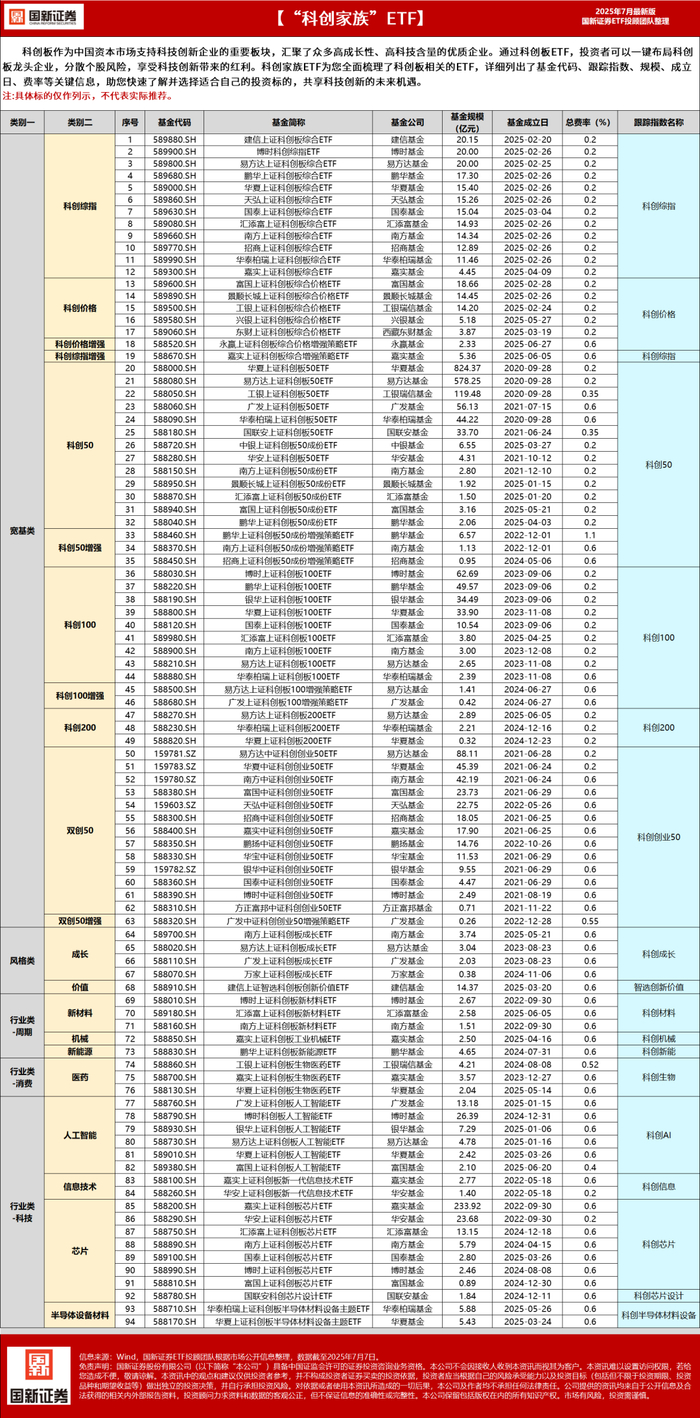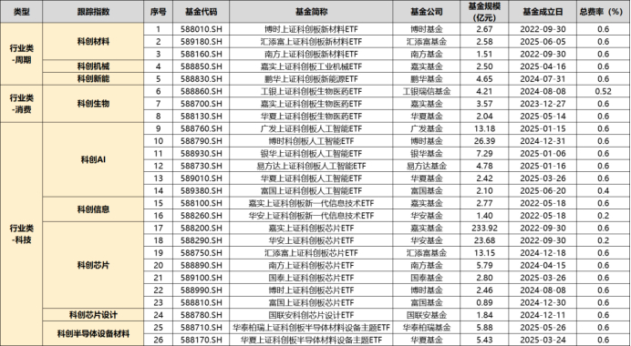 科创指数“全家桶”