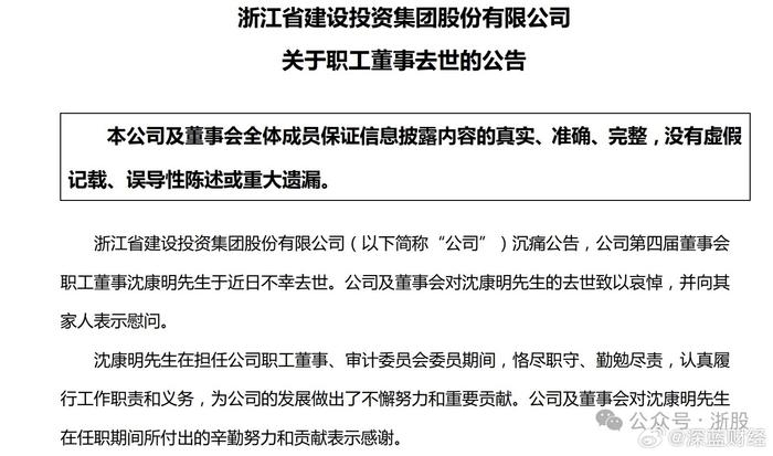 浙江建投职工董事沈康明坠楼身亡享年54岁