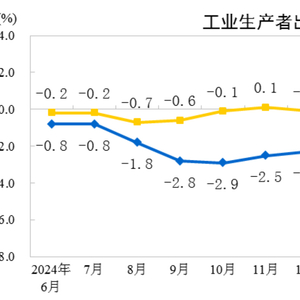 2025年6月份,全国工业生产者出厂价格同比下降3.6%,环比下降0.4%;工业生产者购进价格同比下降4.3%,环比下降0.7%。上半年,工业生产者出厂价格比上年同期下降2.8%,工业生产者购进价格下降2.9%。