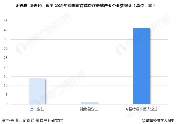 截至2025年4月,深圳市已汇聚高端医疗器械上市企业14家,独角兽企业1家,专精特精小巨人企业超过41家。深圳市高端医疗器械产业竞争力十分强劲。