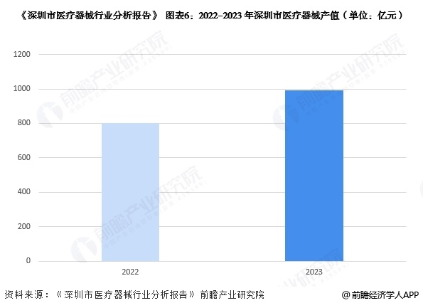 根据《深圳市医疗器械行业分析报告》,2023年深圳医疗器械产值达990亿元,离千亿大关仅一步之遥,产值规模全国占比约10%,居全国各大城市之首。