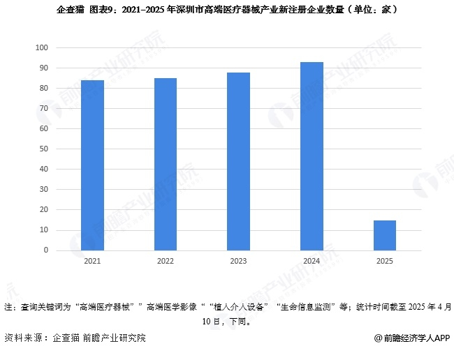 注:查询关键词为“高端医疗器械””高端医学影像““植入介入设备”“生命信息监测”等;统计时间截至2025年4月10日,下同。