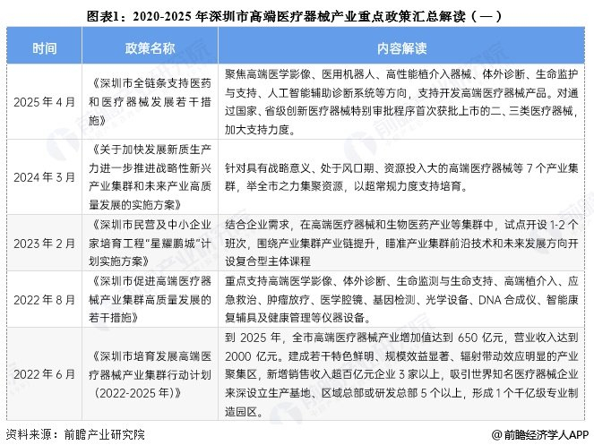 1、深圳市高端医疗器械产业政策环境