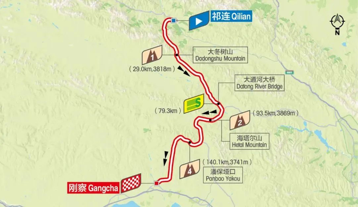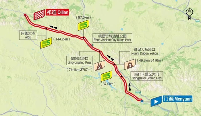 173公里赛段,是一段连接门源和祁连县的高原公路赛段。路线前半程翻越祁连山支脉,将挑战海拔3767米的景阳岭垭口,雪山、草原、林海伴随着骑手们的征程次第展开。