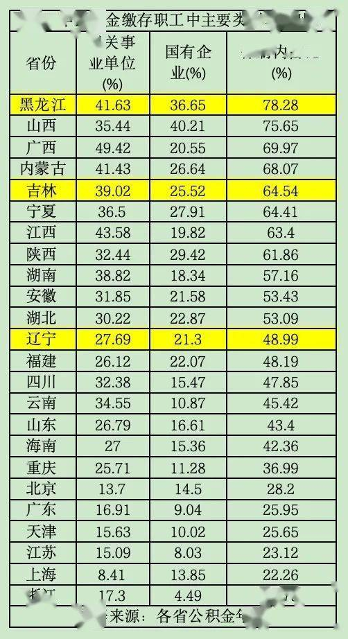 我们再从2024年各省会的公积金缴存情况来看,黑龙江的体制内(机关事业单位和国有企业)缴存占比最高,达到了78.82%,吉林位列第5,达到了64.54%,辽宁情况稍好一点,位列第12,达到了48.99%。 这也就意味着,在东北,100个劳动人口中,就有至少50个捧着铁饭碗。