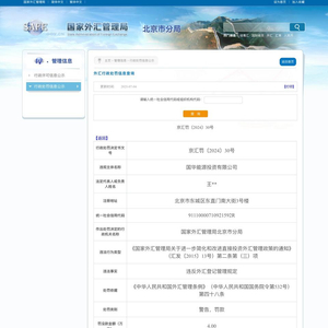 国家外汇管理局北京市分局依据《中华人民共和国外汇管理条例》(国务院令第532号)第四十八条的规定,对该公司作出警告并处以罚款人民币4万元整的行政处罚决定。处罚决定于2024年7月3日正式作出。该处罚信息公示期至2025年7月10日。