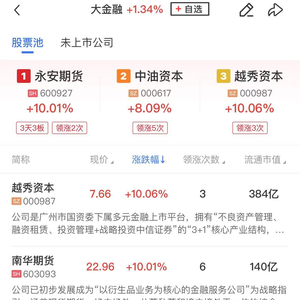 板块上,大金融板块再度活跃,工商银行、农业银行、邮储银行、中信银行再创历史新高。多元金融方向同样领涨,越秀资本、南华期货、永安期货涨停,中油资本、中粮资本涨幅居前。