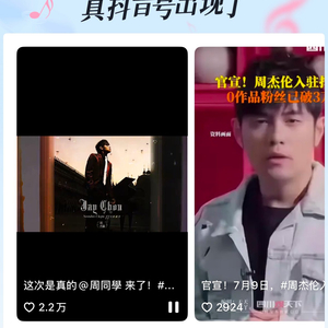 7月9日,界面新闻在抖音搜索“周杰伦”时发现,抖音相关页面显示有“周杰伦真抖音号出现了”的信息,下方关联有明星账号“周同学”,认证标签为歌手。目前该账号粉丝数呈快速上涨态势,半小时内已从6.2万攀升至64.2万左右,但账号内尚未有内容发布。