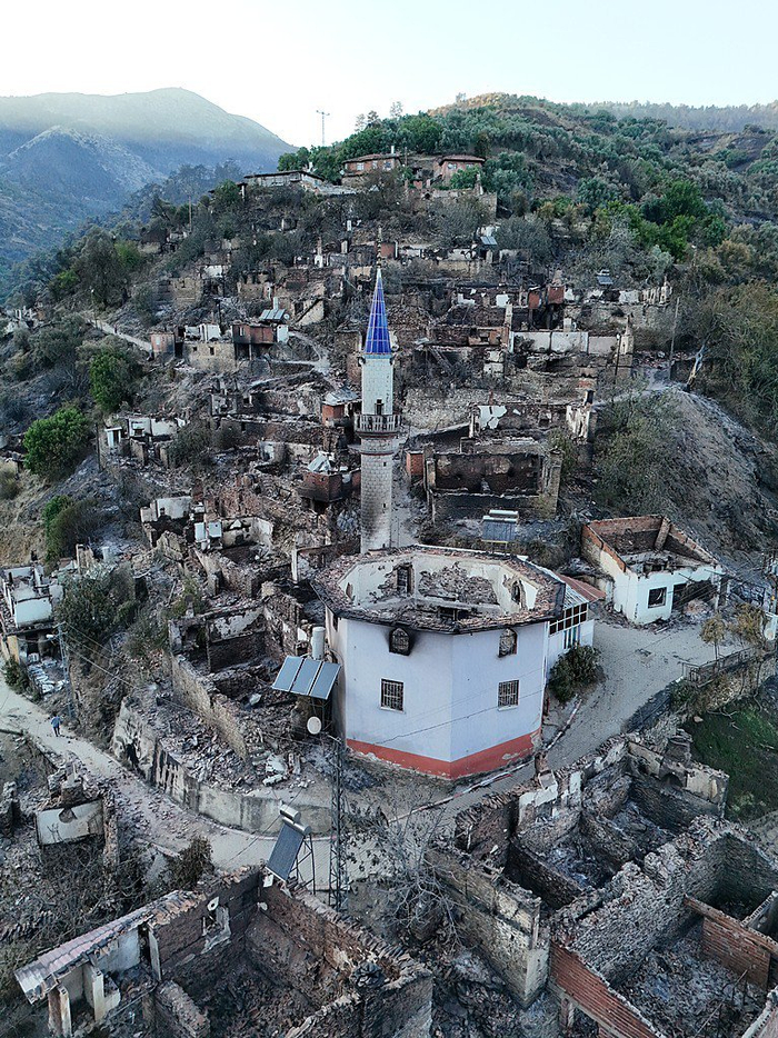 当地时间2025年7月5日,土耳其伊兹密尔,据当局称,这场持续四天的野火始于伊兹密尔厄代米什的托松拉尔村。野火摧毁了整个村庄,烧毁了超过35082公顷土地,造成两人死亡,5万人流离失所。