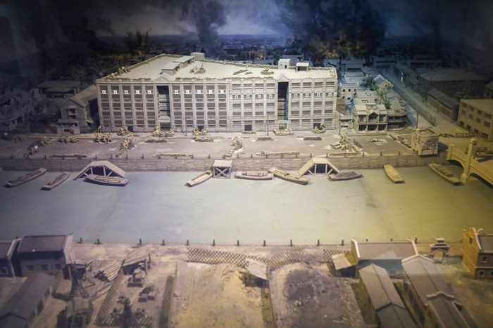 纪念馆内,大量的历史照片和战场实物、复原战斗场景的微缩景箱、谢晋元和战士们雕像等等,将那段英勇卓绝的抗战历史呈现在人们面前。