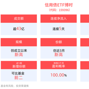 规模方面,信用债ETF博时最新规模达129.24亿元,创成立以来新高,位居可比基金2/4。
