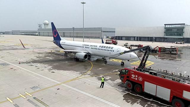 演练模拟一架国内进港航班飞机降落过程中发动机起火,消防和医疗力量紧急出动救援。
