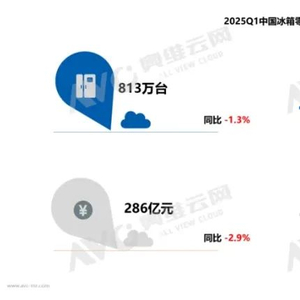 冰箱寒意最足,各项数据全面滑坡:一季度销售额同比下跌2.9%至286亿元,销售量同比下滑1.3%至813万台。