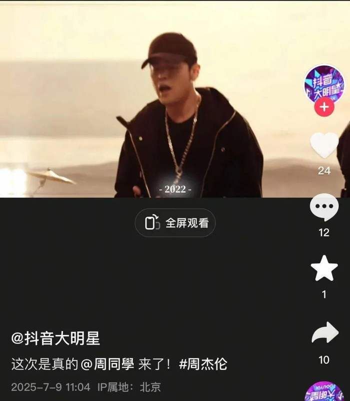 抖音大明星晒出周杰伦视频宣布:这次是真的@周同学来了!