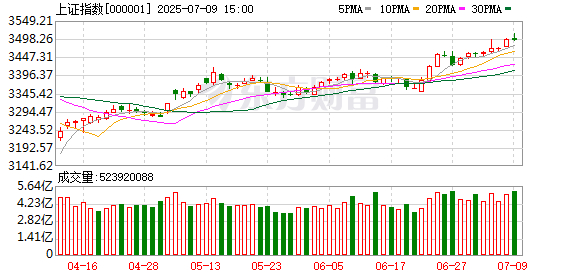 7月9日,市场全天冲高回落,三大指数涨跌不一,沪指3500点得而复失。截至收盘,沪指跌0.13%,深成指跌0.06%,创业板指涨0.16%。