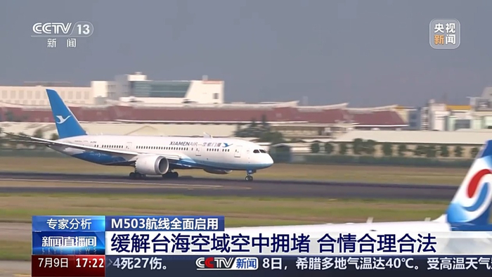 交通运输部民航局7月6日宣布,为进一步优化空域环境、提升运行效率,即日起启用M503航线W121衔接线。至此,时隔十年,贯穿台湾海峡的M503航线终于实现预先规划、全面使用。此条航线对我国东南沿海海上航路以及两岸航运有哪些重要作用?我们为何在这个时间点全面启动M503航线,释放出什么信号,又为何触动了台湾当局的敏感神经?来看专家解读。