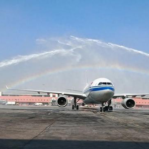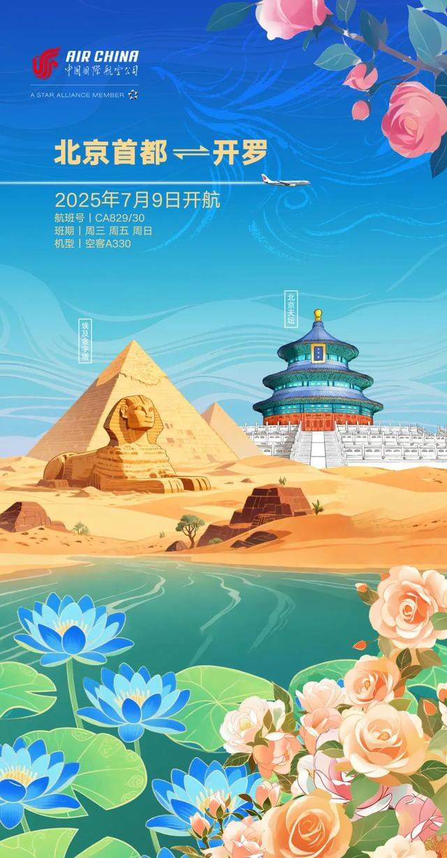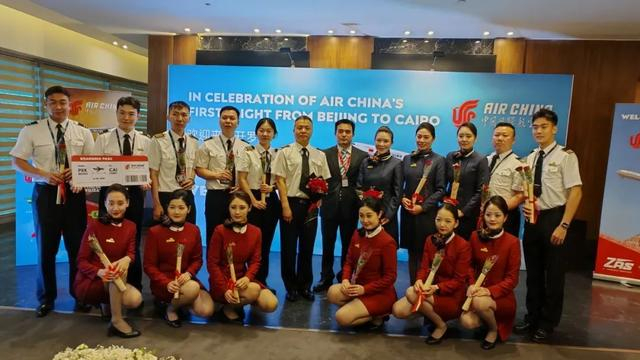 当地时间7月9日8时26分,CA829航班降落在开罗国际机场,标志着国航北京首都-开罗航线正式开航。