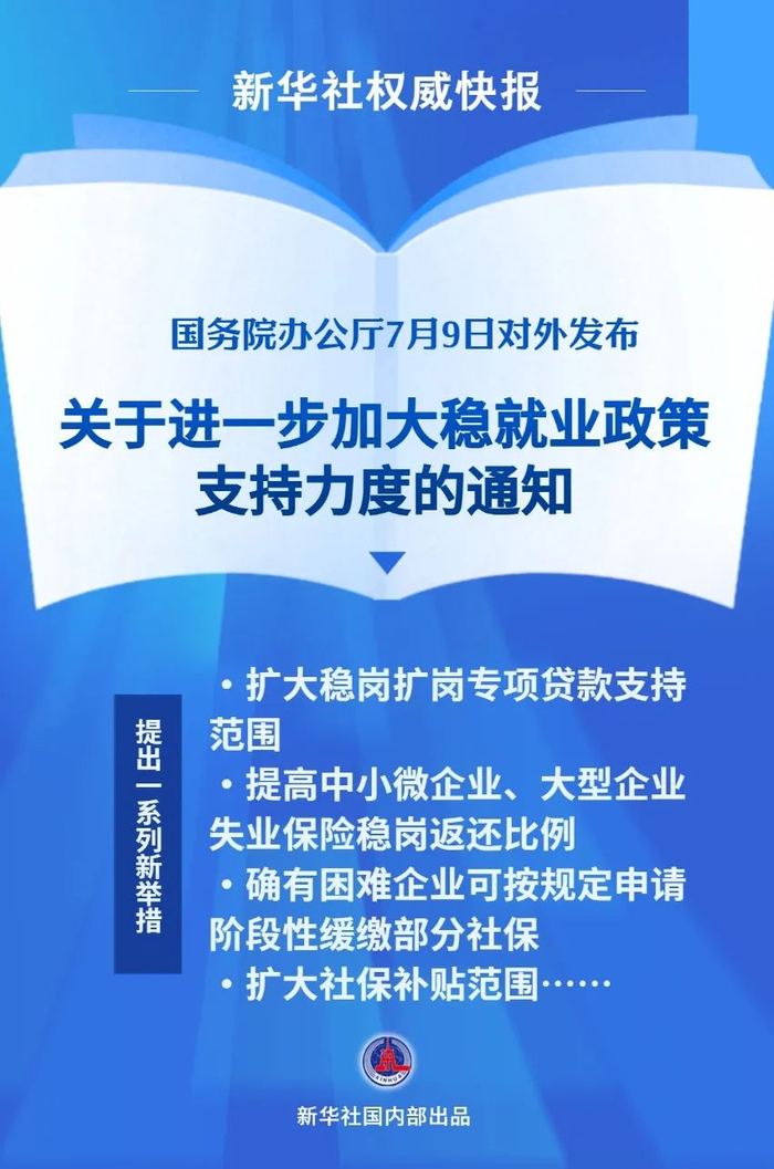 为深入贯彻党中央、国务院决策部署,着力稳就业、稳企业、稳市场、稳预期,推动经济高质量发展,经国务院同意,现就进一步加大稳就业政策支持力度通知如下: