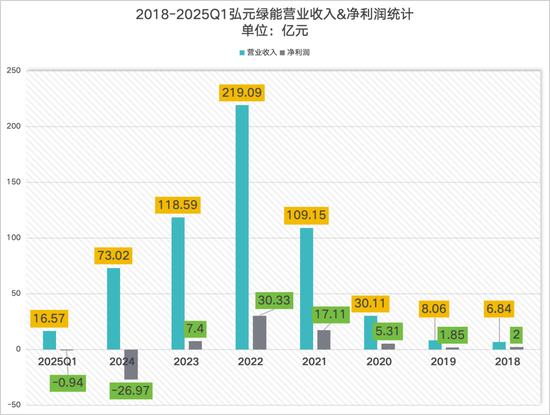 2025年一季度,弘元绿能继续在亏损的泥潭里挣扎。财报显示,该公司实现营收16.57亿元,归母净利润为-0.94亿元,经营活动产生的现金流净额为-5.88亿元。