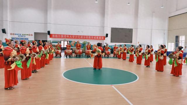 近日,内蒙古鄂尔多斯市准格尔旗老年大学沙圪堵分校教学成果展演在社区文化活动室璀璨启幕。当威风锣鼓队的老人们挥槌击响第一声鼓点,激昂的节奏瞬间点燃全场。这群平均年龄超 60 岁的表演者身着鲜艳的红绸服饰,在教练精准的指挥下,整齐划一地挥槌击鼓、敲响铜镲,激昂的鼓点与清脆的镲声交织在一起,如奔涌的浪潮般震撼人心。