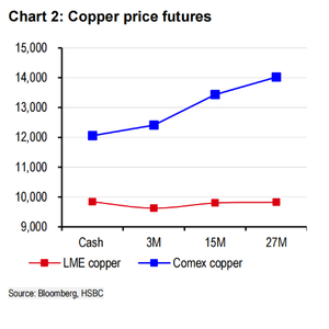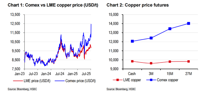 尽管特朗普言论看似即兴,高盛认为其短期执行概率陡增,已将基线预测调整为“将执行50%关税”,并指出市场已对2025年12月合约隐含定价约30%关税水平。同时,套利交易迅速升温,高盛重申,预测未来12个月COMEX-LME价差将进一步扩大。