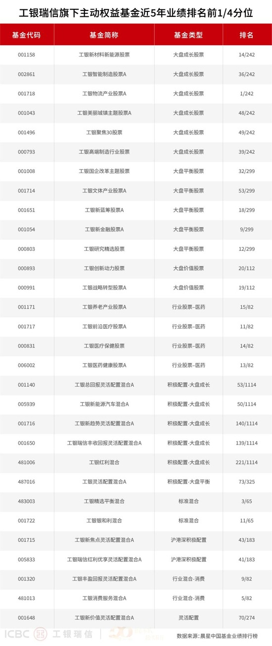 在不同风格和行业主题产品中,工银瑞信基金旗下产品全面开花。根据Morningstar晨星中国数据统计,截至2025年6月30日,在近一年、近两年主动权益类基金业绩榜单中,工银瑞信旗下分别有20只和21只产品名列同类前1/4分位;更长周期来看,近三年与近五年统计区间中,工银瑞信旗下分别有20只和30只主动权益类基金位居同类前1/4。