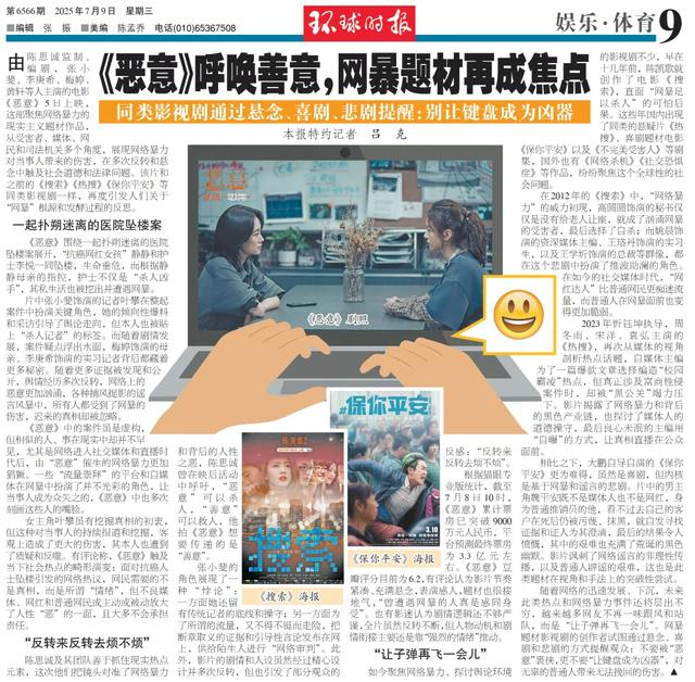 陈思诚及其团队善于抓住现实热点元素,这次他们把镜头对准了网络暴力和背后的人性之恶,陈思诚曾在映后活动中呼吁,“恶意”可以杀人,“善意”可以救人,他拍《恶意》想要传递的是“善意”。