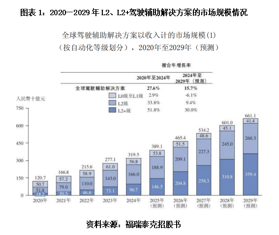 招股书显示,2024年L0级至L2级(包括L2+级)驾驶辅助解决方案行业有超过20名市场参与者;以2024年L0级至L2级(包括L2+级)驾驶辅助解决方案在国内的收入计算,福瑞泰克在第三方自主供应商中排名第二,市场份额为7.2%。
