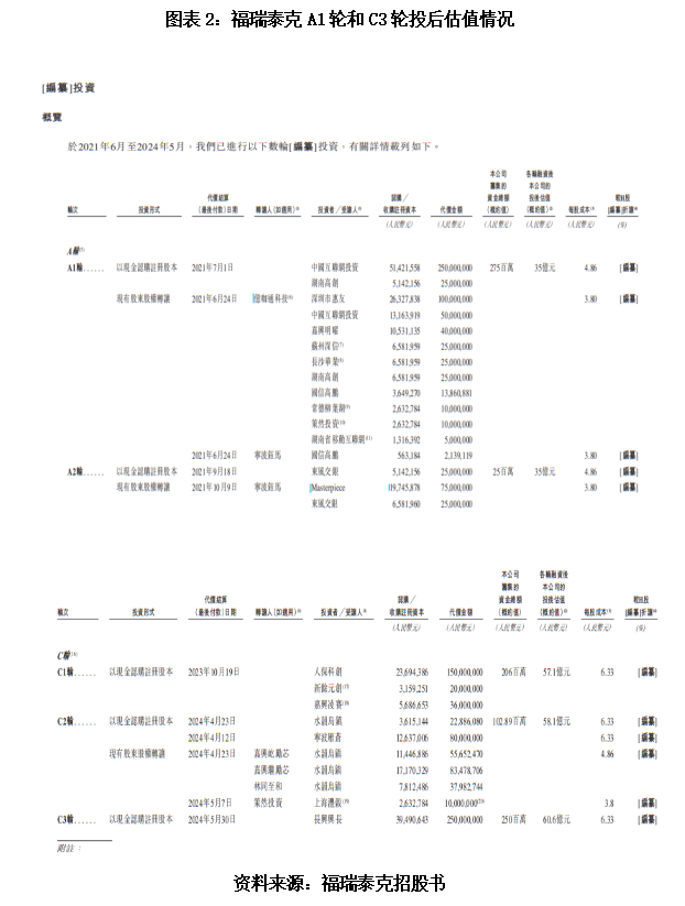 时代商业研究院注意到,对比2024年11月22日发布的招股书版本,福瑞泰克在2025年5月23日发布的新版招股书中,已将各轮次融资的投后估值图表删除。