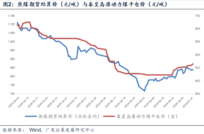 第三,从数据来看确实如此,6月PPI煤炭加工价格环比-5.5%、煤炭开采和洗选业价格环比-3.4%、黑色金属冶炼和压延加工业价格环比-1.8%,均弱于高频数据的焦煤、动力煤、螺纹钢价格表现,原因可能是煤价是最后一周反弹(图2),而统计采样前三周更为关键;同时钢铁现货价格弱于期货也导致高频数据存在一定偏差。