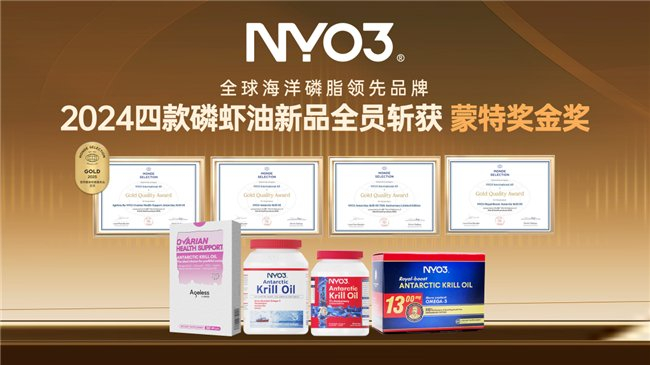 今年NYO3斩获欧睿国际"全球磷虾油销量领先品牌"及"高磷脂磷虾油销量第一品牌"双冠认证,并横扫蒙特奖一项特级金奖与六项金奖。旗下明星产品阿蒙森磷虾油更获Eurofins国际反兴奋剂认证,确认不含WADA任何禁用成分,以"纯净挪威基因"重塑全球健康产业标准。