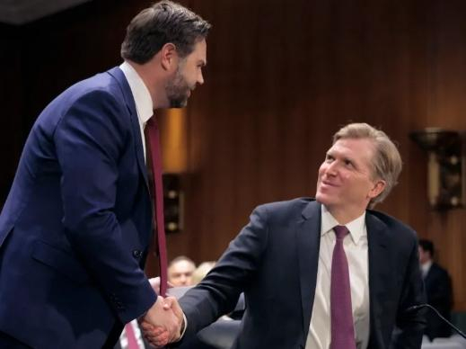 今年3月,科尔比在提名听证会上与万斯握手 美媒