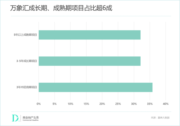从项目的发展阶段来说,万象汇3-5年成长期、5年以上成熟期项目达64.15%,处于增长潜力较好的阶段,为未来可持续的扩募储备了足量的成熟资产。