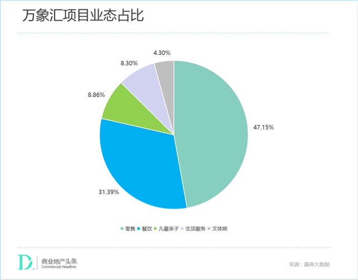 在当前的招商环境下,能够吸引零售租户的几乎都是区域内的头部项目,因此,零售业态占比是很好的结果指标。