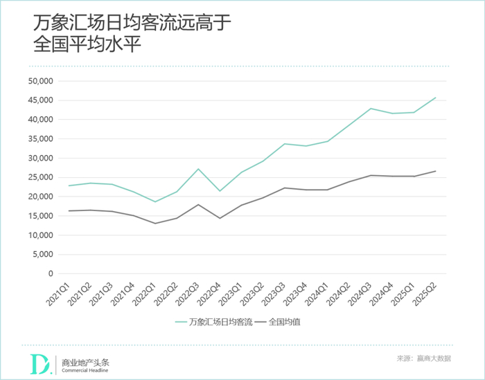 硬件迭代、品牌加持,叠加运营实力,万象汇产品线客流明显优于全国平均水平。