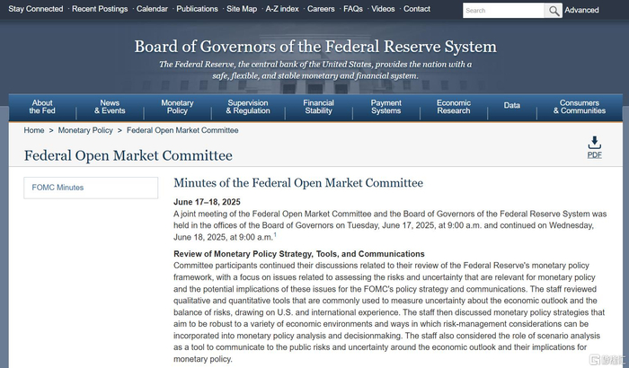 北京时间7月10日凌晨,美联储公布了6月17日-18日联邦公开市场委员会会议纪要。