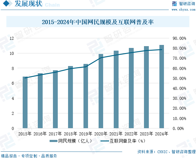 近年来,我国互联网行业保持良好发展势头,互联网基础资源夯实发展根基,数字消费激发内需潜力,数字应用释放创新活力,更多人群接入互联网,共享数字时代的便捷和红利。数据显示,截至2024年12月,我国网民规模达11.08亿人,互联网普及率达78.6%。网民规模和互联网普及率持续增长,不仅加速了现有技术的迭代升级,更通过持续释放的数字消费潜力,为下一代互联网建设创造了有利条件。