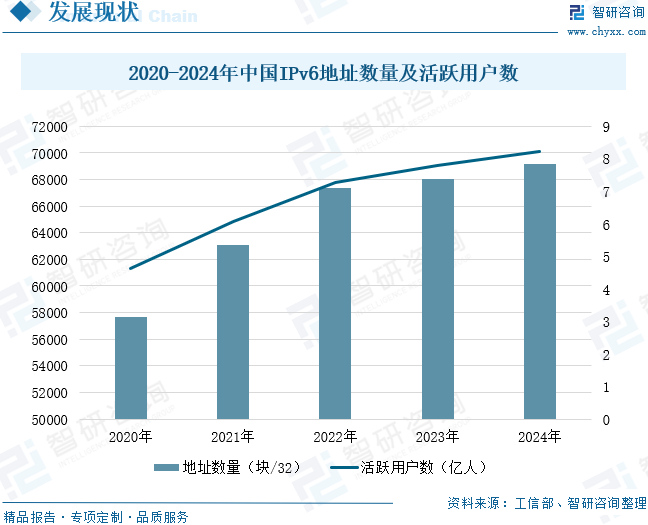 作为下一代互联网的核心协议,IPv6的规模部署和演进已成为全球共识。对国家来说,IPv6规模部署和应用是互联网演进升级的必然趋势,是网络技术创新的重要方向,是网络强国建设的关键支撑,能有效促进提升我国在下一代互联网领域的国际竞争力,提升我国在互联网领域的技术话语权。对个人来说,IPv6能给我们带来更快的数据传输速度、更安全的数据传输方式和更好的隐私保护。近年来,我国在IPv6推广方面取得了显著进展。数据显示,截至2024年12月,我国IPv6地址数量为69148块/32,同比增长1.6%;IPv6活跃用户数达8.22亿,同比增长5.66%,在网民中占比达到74.19%。大力发展基于IPv6的下一代互联网,有助于提升我国网络信息技术自主创新能力和产业高端发展水平,高效支撑移动互联网、物联网、工业互联网、云计算、大数据、人工智能等新兴领域快速发展,不断催生新技术新业态,促进网络应用进一步繁荣,打造先进开放的下一代互联网技术产业生态。