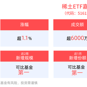 规模方面,稀土ETF嘉实近2周规模增长4399.90万元,实现显著增长,新增规模位居可比基金第一。份额方面,稀土ETF嘉实近1月份额增长2.17亿份,实现显著增长,新增份额位居可比基金第一。