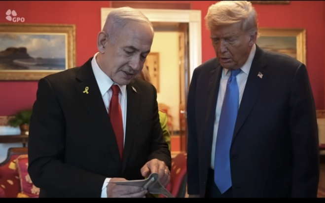 内塔尼亚胡送给特朗普的“特别礼物”在社交平台X上引发争议。