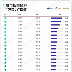 北京、深圳、上海位列全国前三位。珠海、绍兴、芜湖、株洲等13座地级市以差异化路径突围,中小城市正成为低空经济生态的重要参与者。