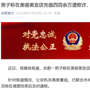 据合肥警方9日消息,近日,有媒体报道,合肥一男子称在美容美发店充值四百余万,遭遇退费难。